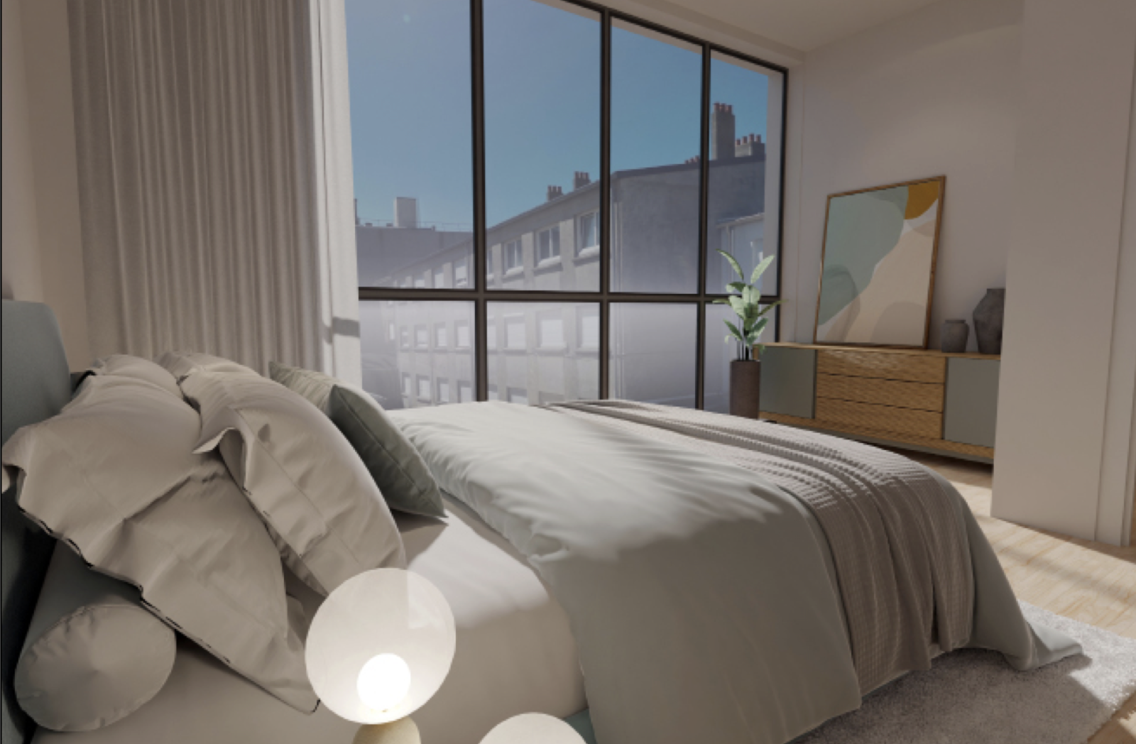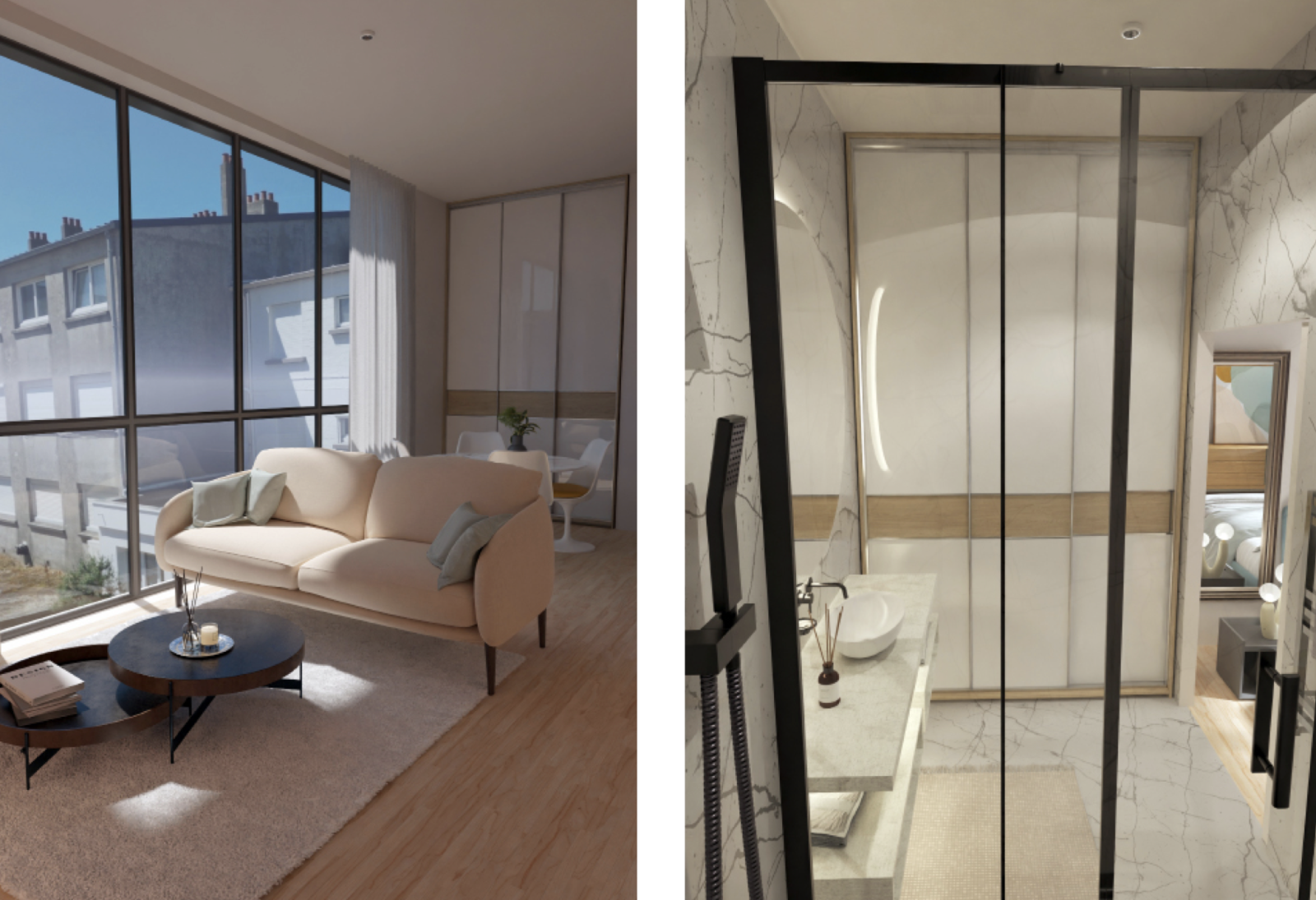 Parquet en chêne massif, marbre de Carrare, robinetterie Grôhe, meuble salle de bain Porcher.... Que des matériaux de qualités pour l'ensemble de la construction et des appartements