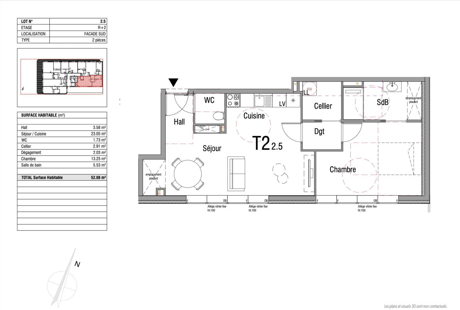 3 pièces 54 m²