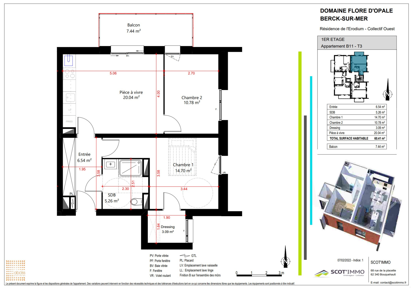 Sur la commune de Berck, faîtes l'achat d'un nouveau bien immobilier avec cet appartement T3, dans le neuf. Bâtiment conforme aux normes d'accessibilité. L'appartement se trouve au premier étage dans un bâtiment sur 3 étages, l'accès se fait à l'aide d'un ascenseur. Dans 60.41m², le bien se compose d'une entrée, un salon-séjour-cuisine de 20 m², 2 chambres dont une avec dressing, une salle d'eau. Le double vitrage garantit la tranquillité des occupants. Pour vous aérer sans quitter votre appartement, vous bénéficierez d'un agréable balcon de plus de 7m², ce qui amène la surface à vivre à 67.85m². L'habitation s'accompagne d'une place de parking. Commerces et plage sont rapidement accessibles. Le prix de mise en vente est de 197 500 €. Ce domicile pourrait bien vous plaire si vous envisagez votre premier achat immobilier ou un investissement. Si ce logement vous intéresse, contactez rapidement le 07 67 59 56 46.