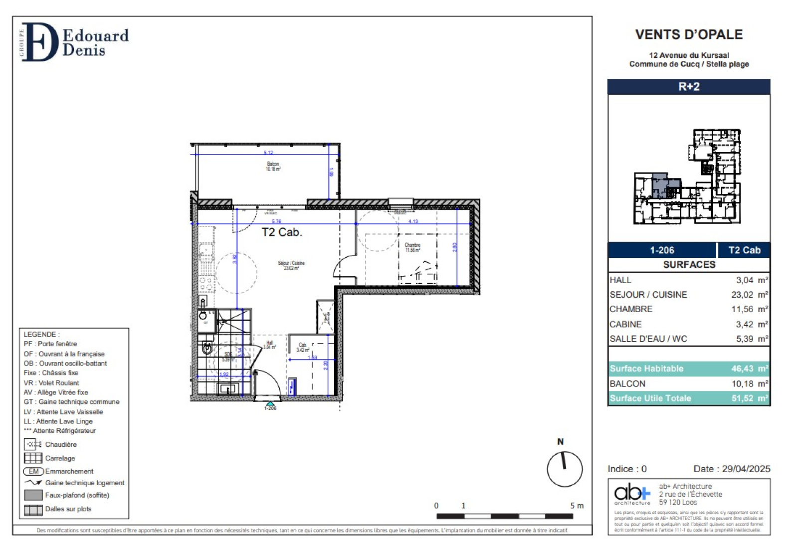 Appartement, 2 pièce(s), surface de 46m², situé sur la commune de : Stella-Plage ...