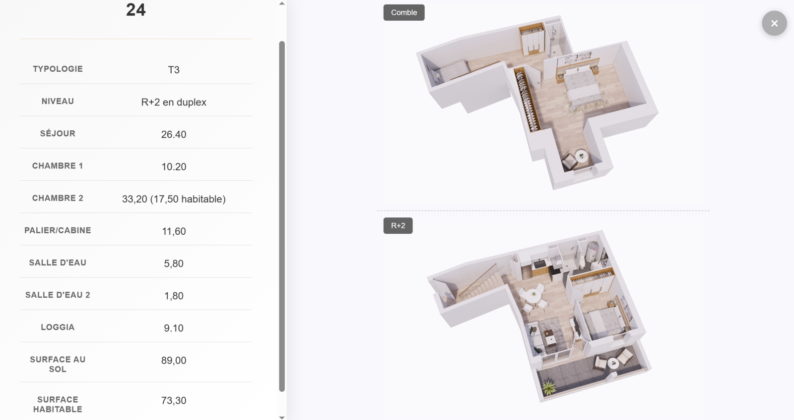 Appartement, 3 pièce(s), surface de 73.3m², situé sur la commune de : Stella-Plage ... Composé d'une loggia de 9.1m². Possibilité de parking aérien et en sous-sol ainsi que de box en supplément.