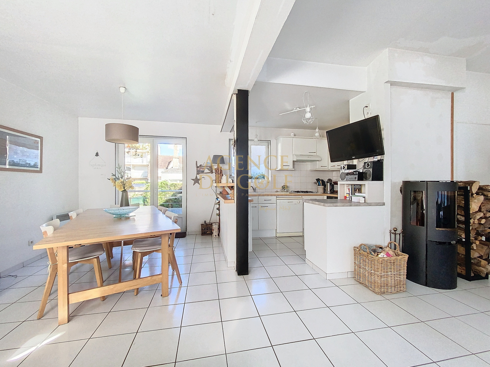 Comprenant; Au rez-de-chaussée salon séjour avec cuisine américaine meublée et équipée donnant sur terrasse extérieure suspendue à l'arrière de la maison et d'une terrasse avec un jardinet sur le devant côté centre ville.