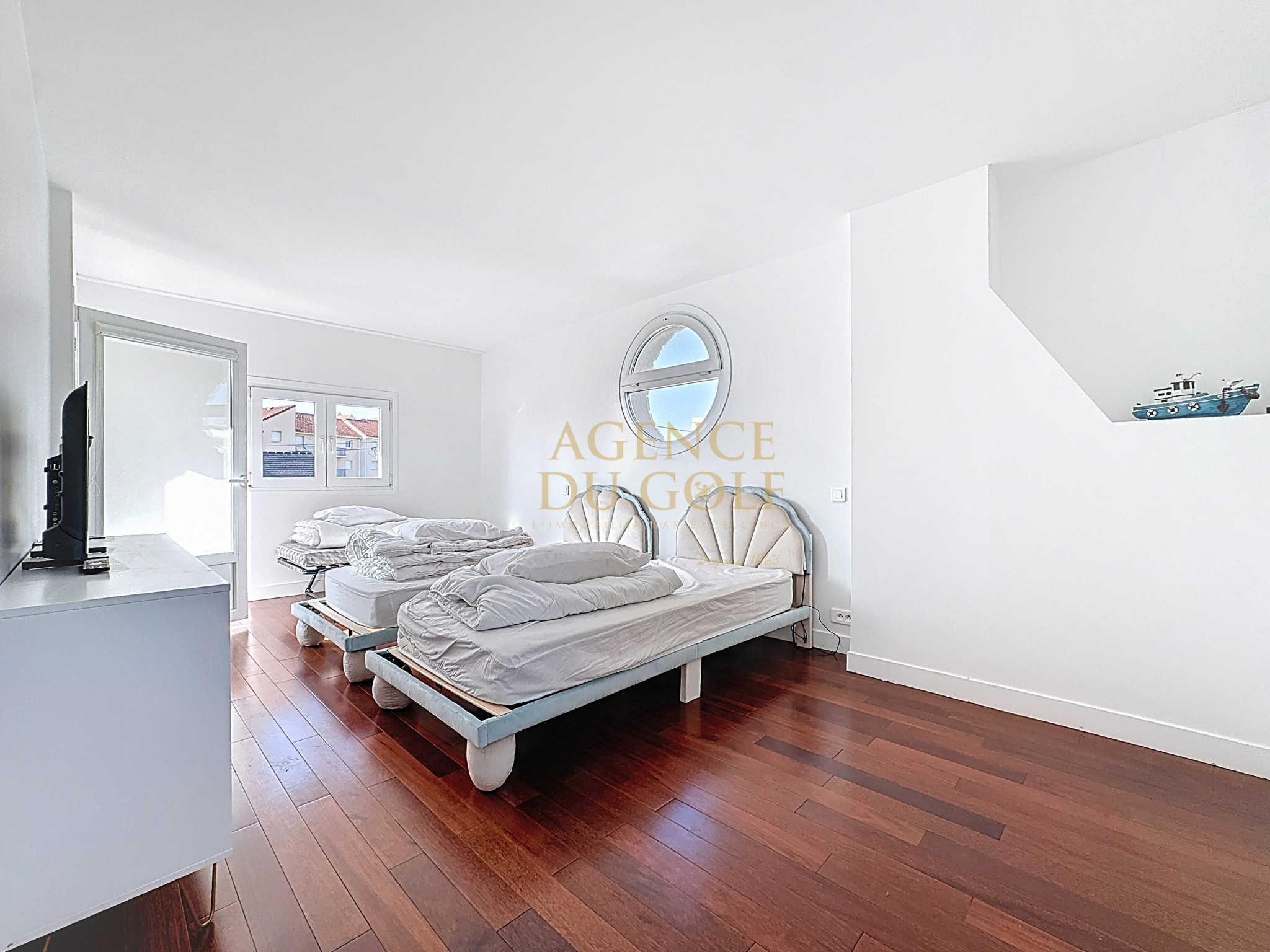 Palier desservant 1 chambre avec salle d'eau et balcon privatifs vue mer, 1 suite parentale d'environ 18m² accès balcon vue mer, salle d'eau, wc.