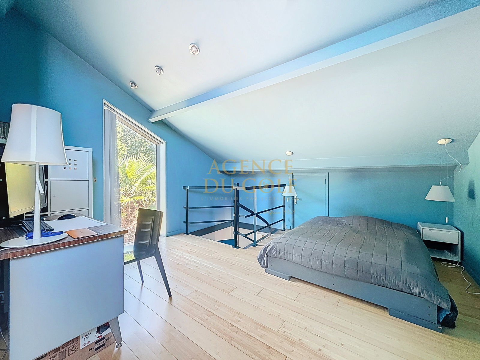 - Chambre en mezzanine à l’étage avec rangements et espaces de stockage