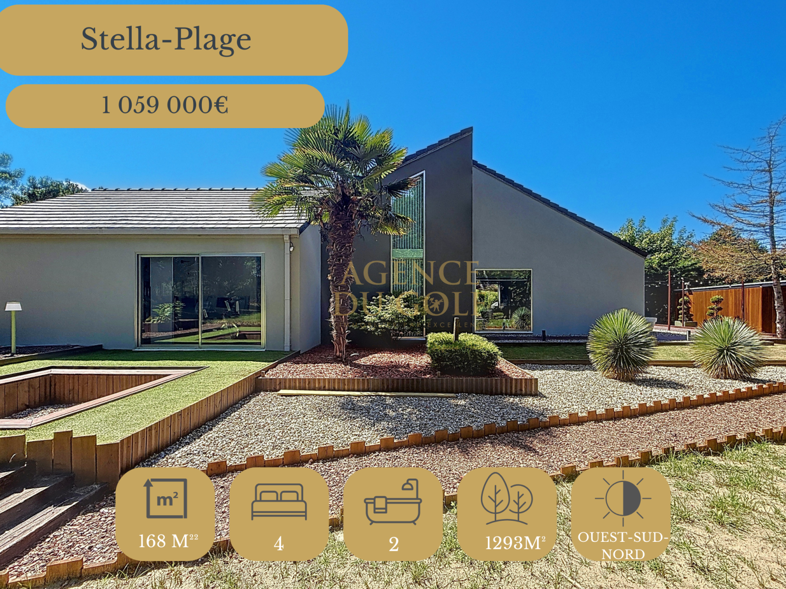 Stella-Plage – Secteur Ultra-Prisé | 168 m² | 4 chambres | Parc arboré 1 300 m² | Piscine chauffée | Prestations de luxe