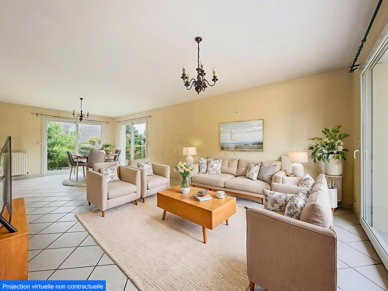 Les prestations incluent un double garage d'environ 38 m² avec portes motorisées, des volets roulants électriques en grandes parties. Le jardin paysager, sans vis-à-vis, offre un espace de détente privilégié.