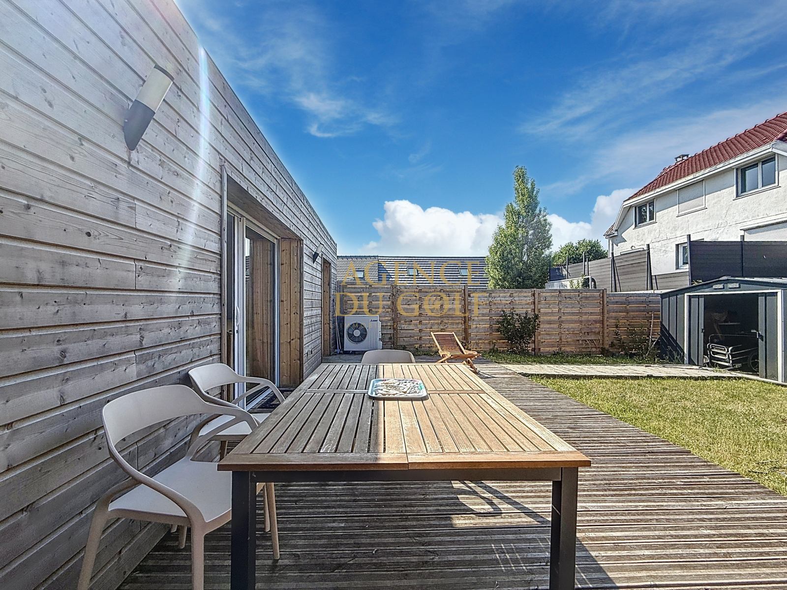 Exclusivement Agence du Golf. Située à seulement 1 km de la plage et à 50 mètres des dunes, dans un quartier résidentiel paisible, cette maison mitoyenne traversante de 122 m² (orientation nord-sud), bâtie sur une parcelle de 350 m², vous séduira par sa rénovation complète et son agencement fonctionnel.