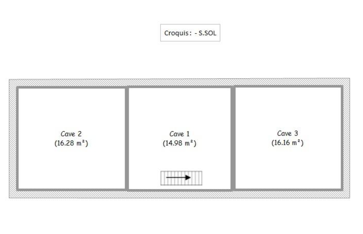 Grande cave sur toute la superficie de la maison (hauteur sous plafond : 1,75 m), avec arrivée d’eau et électricité, idéale pour une buanderie ou un atelier.