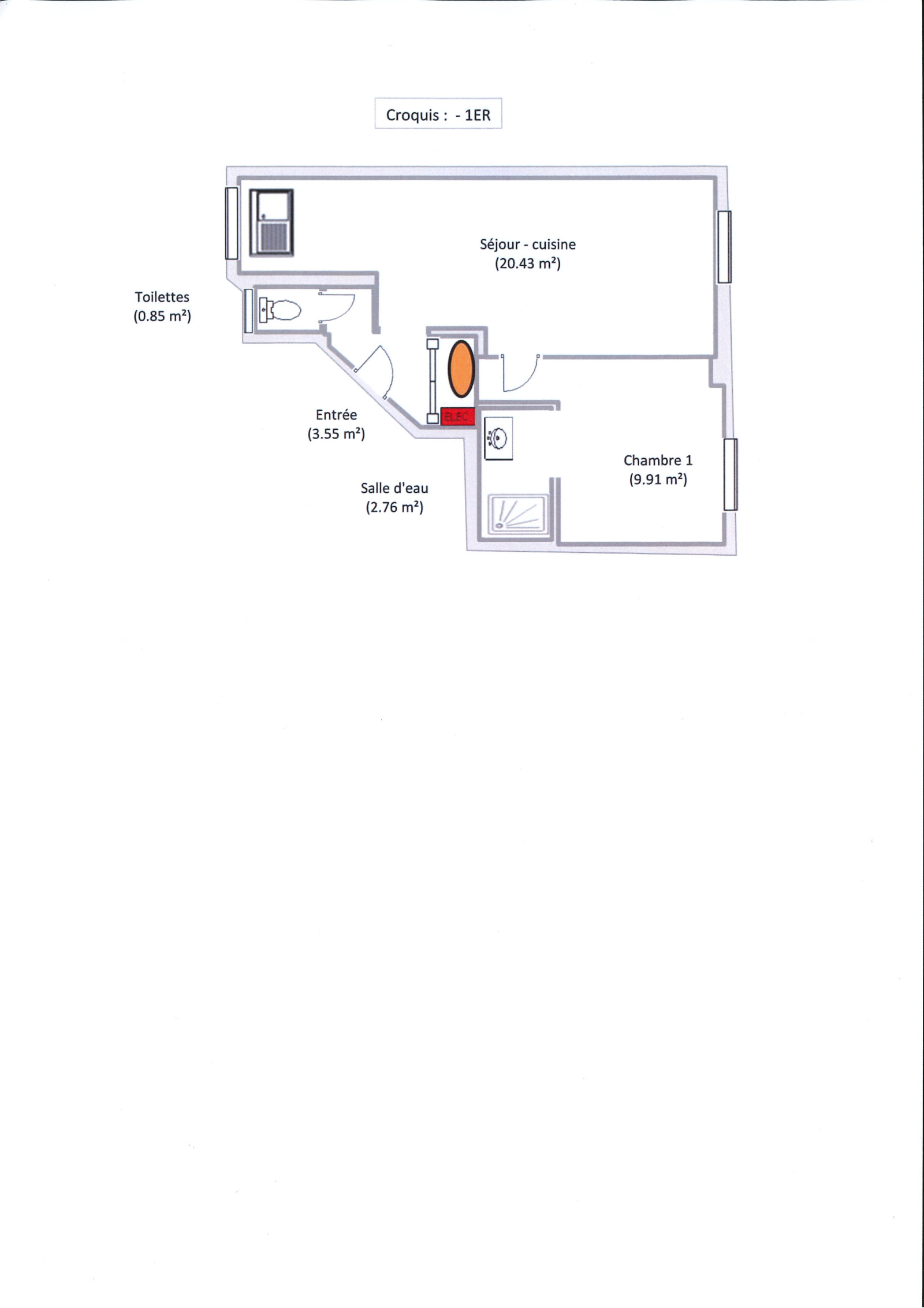 Sa surface intérieure habitable totalise environ 37.5m² en loi Carrez. Des grandes fenêtres à double vitrage assurent le calme du lieu et une excellente luminosité.